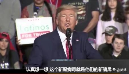 第一张图:特朗普在竞选集会中说,新冠病毒是美国的民主党对我们的“新骗局”!