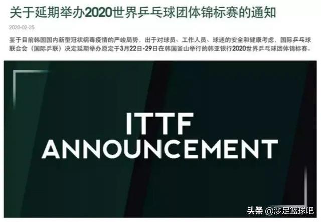 北京时间2月25日,国际乒联就釜山世乒赛的延期举行,官方正式发文给各国乒协,通知如下: