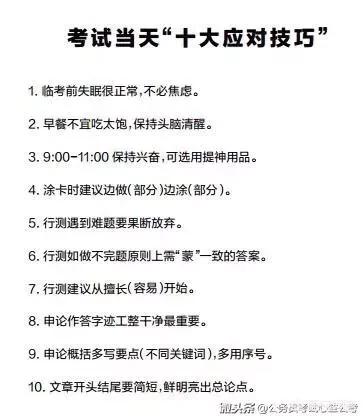 心态方面:各位宝宝今晚一定要保证充足的睡眠,明天清醒答题。如果紧张,请相信自己,只有认真备考才会紧张,说明你离成公只差明天的考试咯,摆正心态,认真做答。