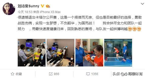 3月1日下午19点,刘诗雯在社交媒体发文:很遗憾退出卡塔尔公开赛,这是一个艰难而无奈、但也是目前最好的选择,勇敢战胜伤病,实现一生梦想,不负韶华,为国而战!我会拼尽全力和团队一起努力,用最快速度健康归来,回到熟悉的赛场,与队友一起拼搏呐喊。