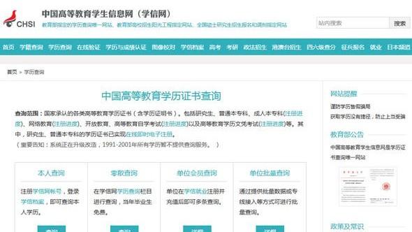 上“国家高等教育学生信息网(简称“学信网”),是教育部高校学生司指定的电子政务平台,网站依托中心建立的集高校招生、学历查询系统、学籍学历信息管理平台等多套电子政务系统和社会信息服务系统。