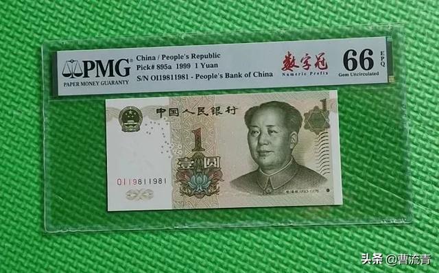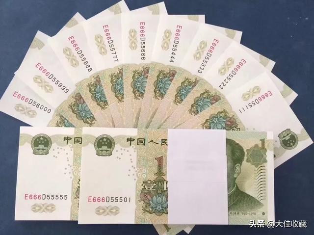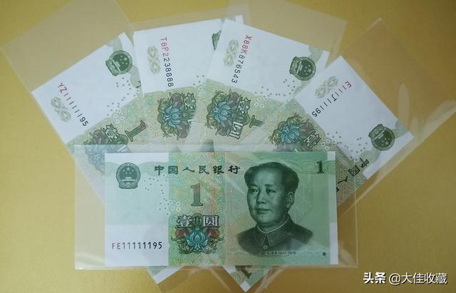 品相好容易看,那么什么样的号码才算漂亮呢?第五套人民币一元面值的发行量非常大,值得收藏的号码得尾数五同以上,也就是我们俗称的老虎号;越往上的号码收藏价值越高;另外还有一些有趣的号码排列方式也是值得关注的,比如顺子号、开门号、关门号、爱情号等等。