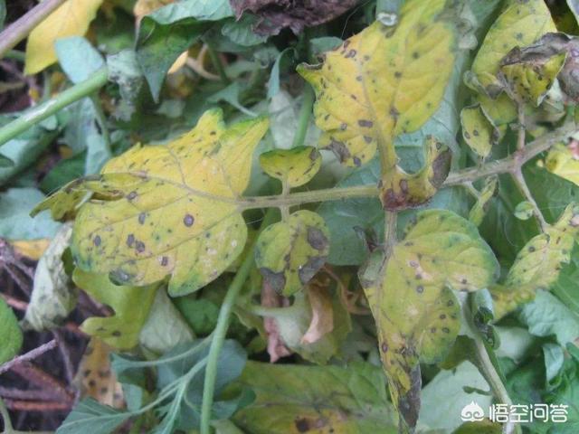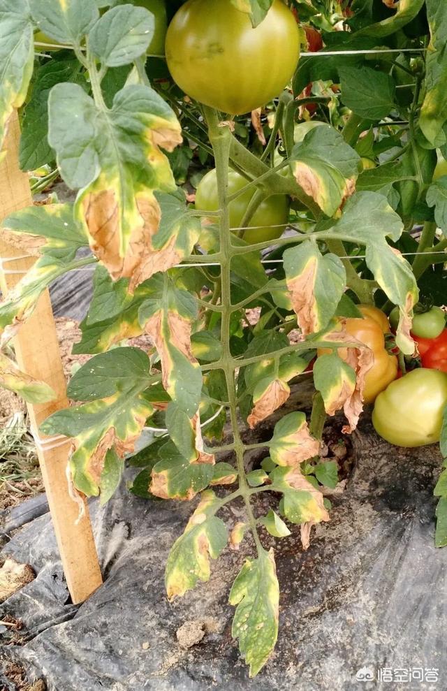 2.枯萎病,西红柿茎杆一边叶子是黄的一边叶子是绿的,有的还是一片叶子半边黄半边绿。最后枯萎而死且不掉落。