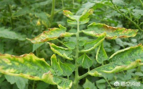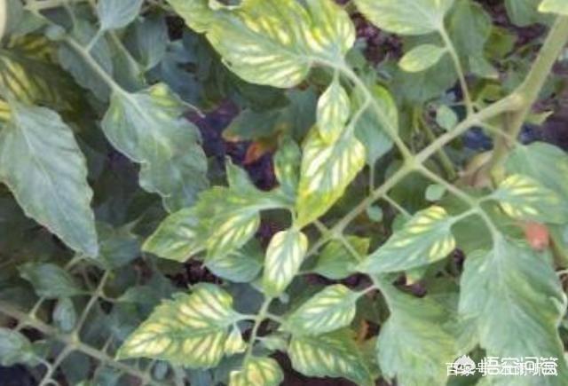 1.西红柿下部叶片变黄,但是叶片的脉络却还是绿色的,这是因为西红柿缺少微量元素镁的缘故而产生的。