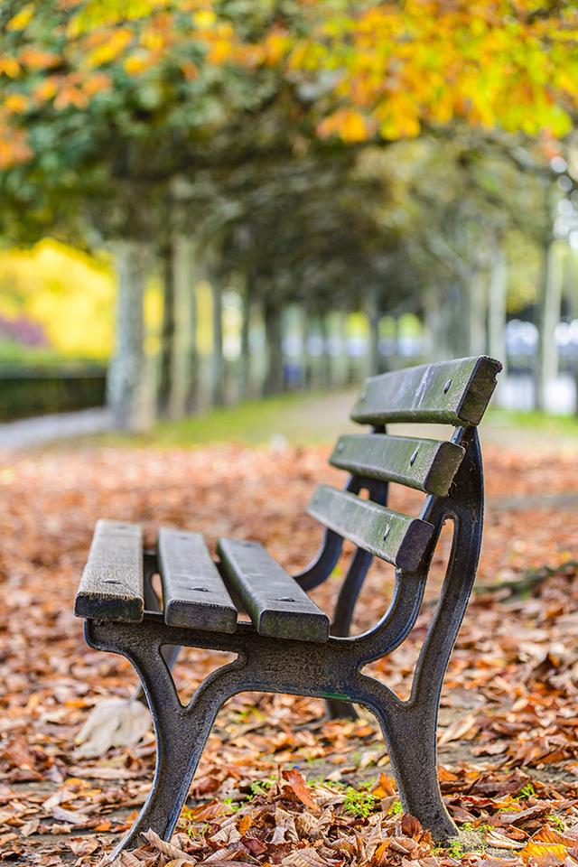 落叶、小溪,长椅,都在诉说着离别的思绪。