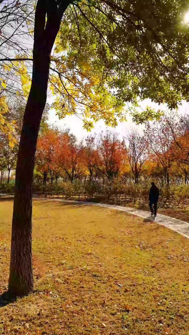 手机拍秋色,找到最佳的时段,利用逆光拍摄为好,这张就是手机逆光拍的效果。