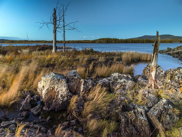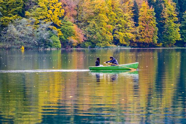 清晨或者傍晚,在湖边拍摄,用倒影来突出秋天的美丽。倒影可以清晰,也可以抽象。