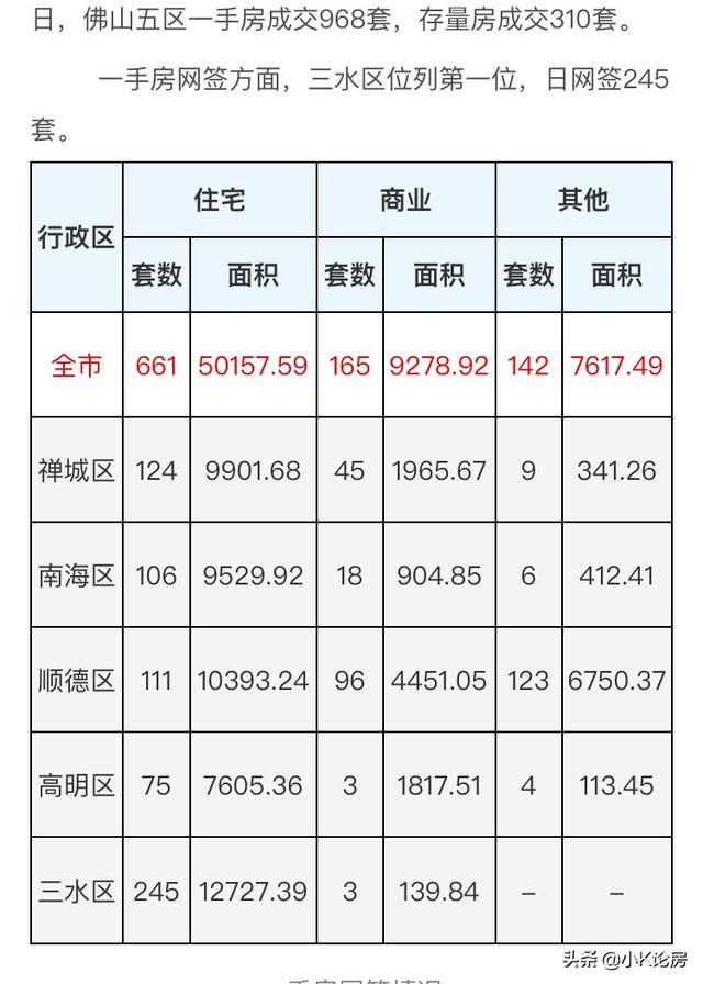 据佛山市房产信息网数据显示,2019年7月26日,佛山五区一手房成交968套,存量房成交310套。