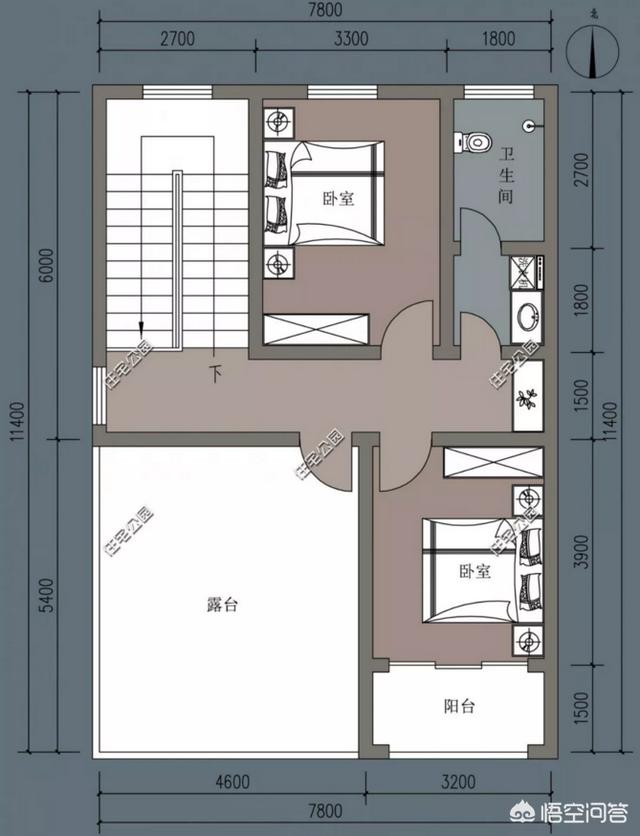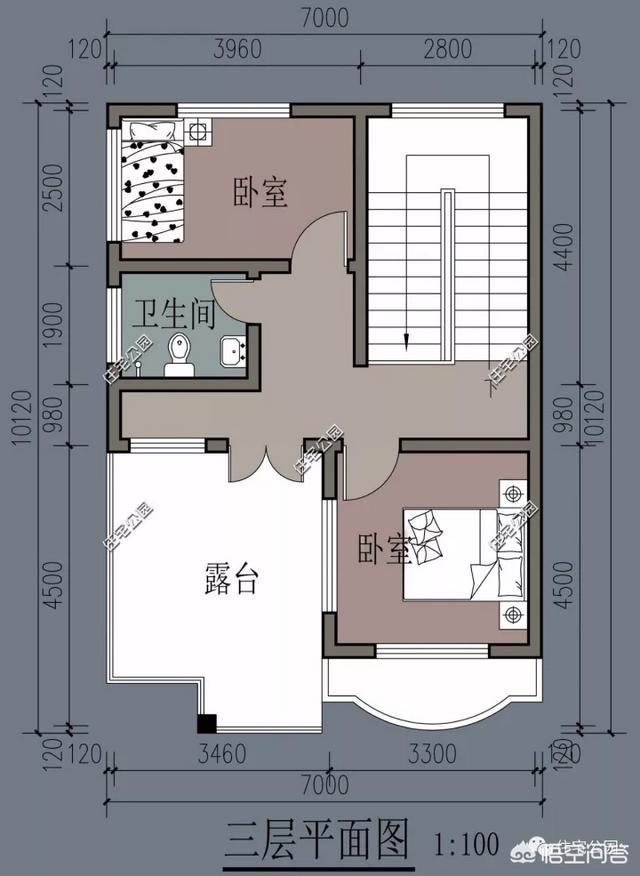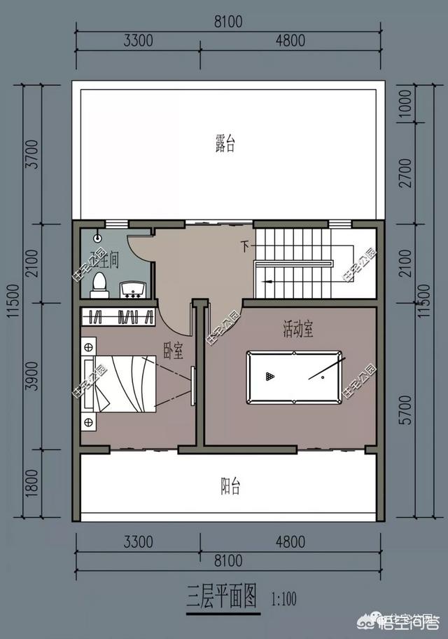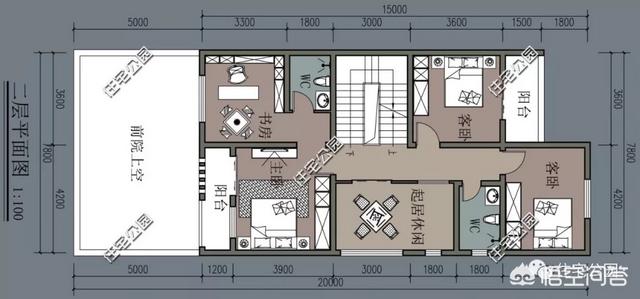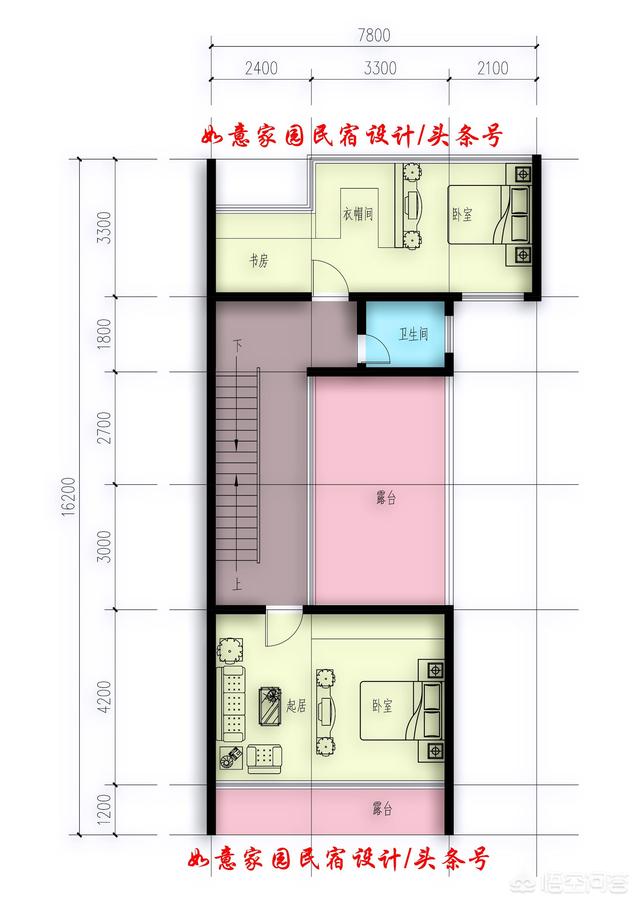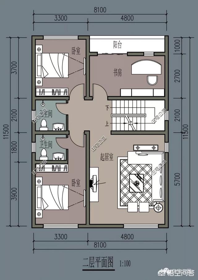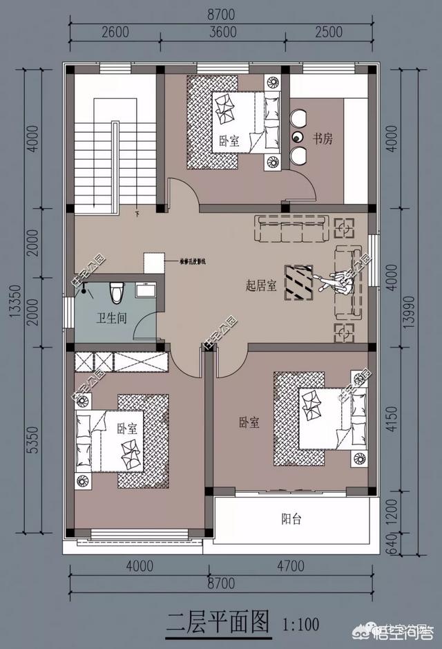 楼上作为居住空间与起居空间分开,动静分离的同时保证居住生活的私密性。