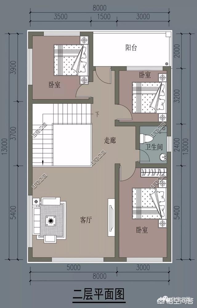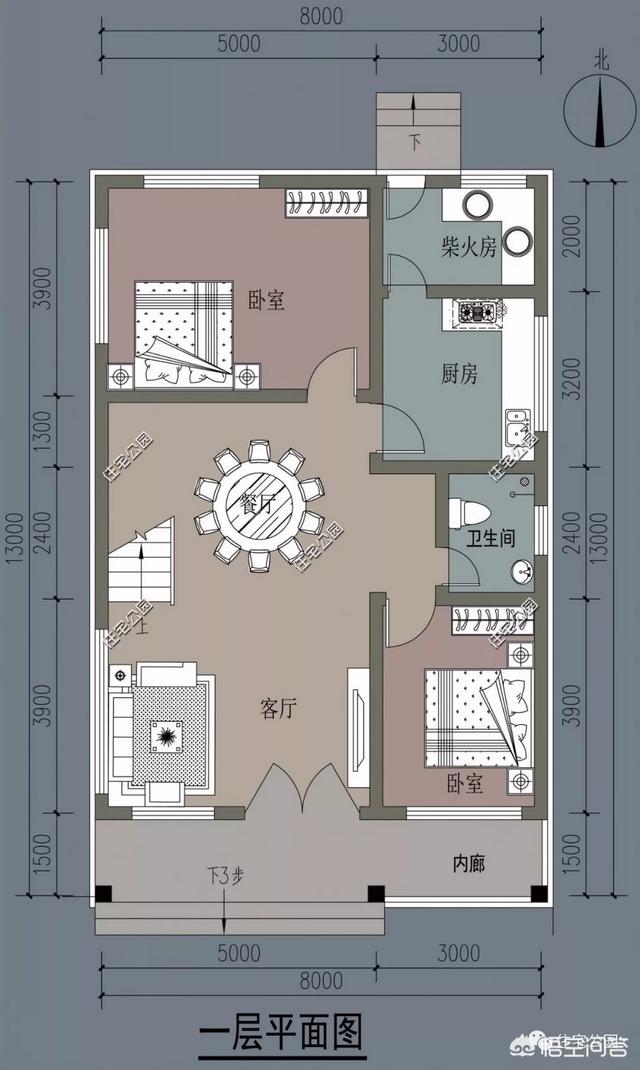 8米宽也是可以设计出不错的房子的,还是要根据你的实际地形情况来进行设计!下面给出之前设计的一个,不知道符合你的地形不符合!