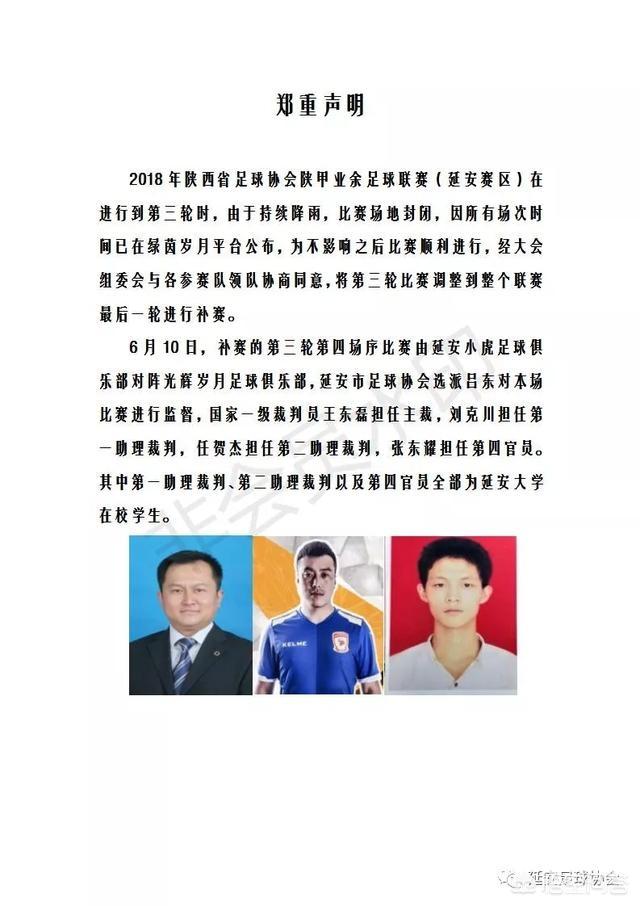 首先,延安足协在声明中显示三个重要情况: