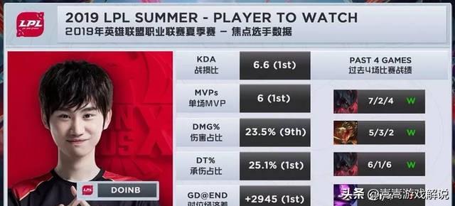 doinb夏季赛的数据也很符合他的一贯风格。参团打节奏,承伤高,视野的分高。虽然很多人觉得他拿的都是混子团队英雄,但也打出了极高的分均伤害。