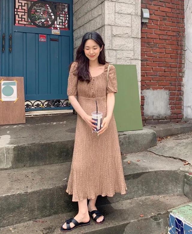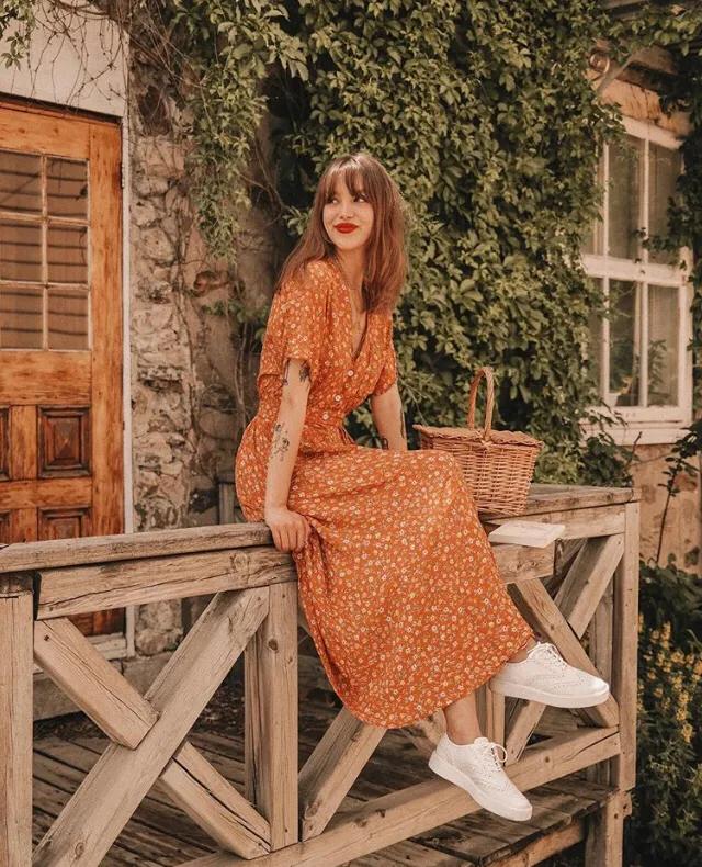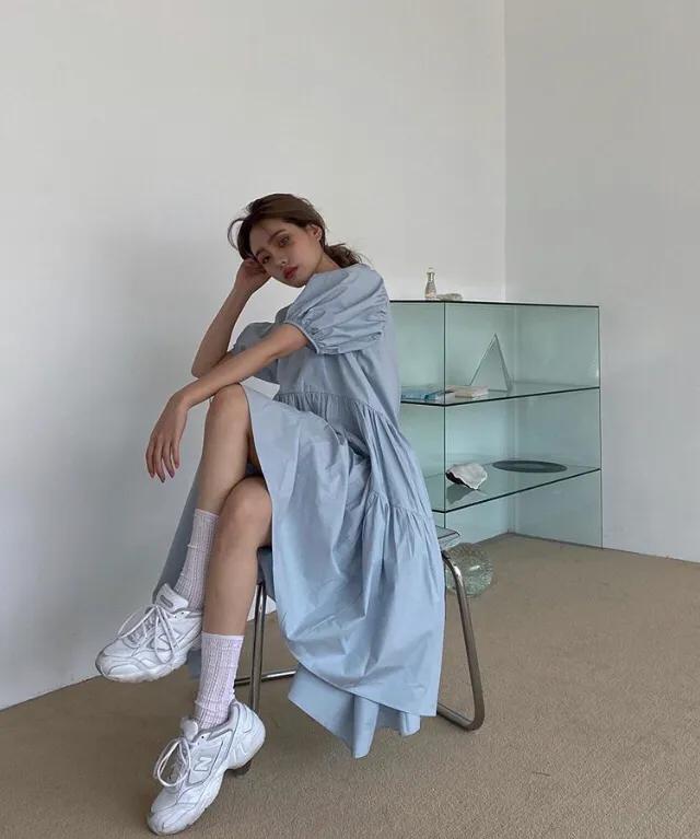 5.宽松的大裙摆遮住臀部和大腿多余肉肉。且飘逸灵动的裙摆还能减弱身材带来的笨重和臃肿感。