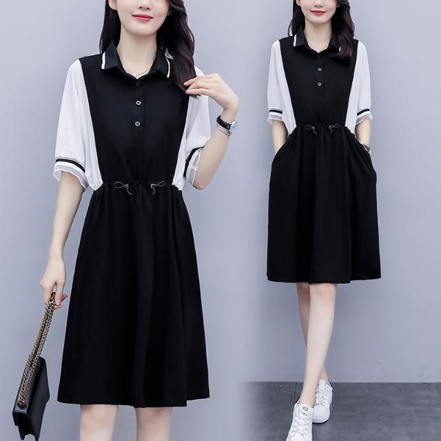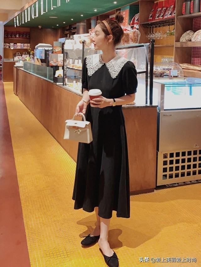 第三 这款连衣裙也非常不错,两边的袖子是白色,中间是黑色,大家都知道拼色的上衣最显瘦,黑色又能把臀部遮住,显瘦的效果真的不错。