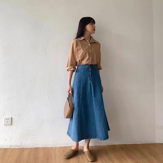 A字裙也是非常适合这个身材的单品,裙子可以选择长长一点,可以遮住你的大腿。