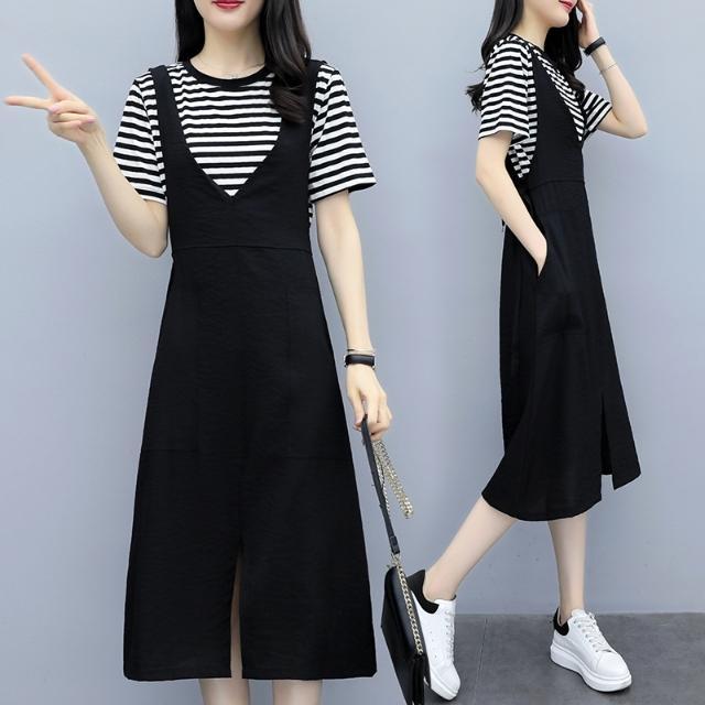 第四 黑白条其实并不的显瘦,但是外边这个背带连衣裙。上部的背带能把上身分成几个部分大家都懂的,这样特别显瘦,视觉效果特别好。