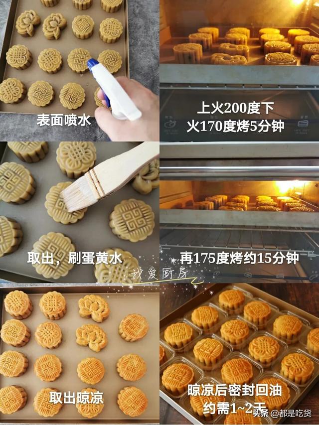 18、放回烤箱继续,170度13分钟。刚出炉月饼是软的,凉了就硬了,密封回油2天后又变软食用最好吃啦!