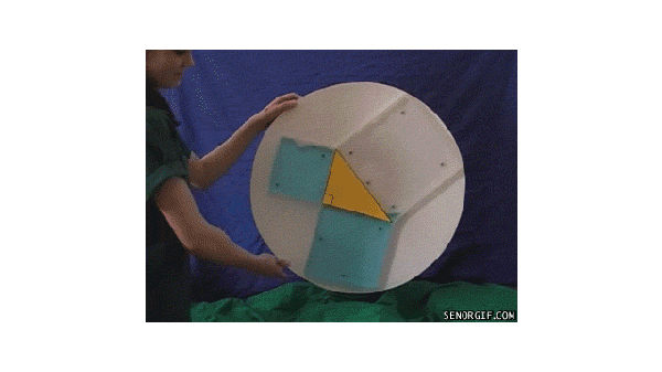 比如数学上的勾股定理,用物理现象可以直观的证明(见下图),对数学定理的推演和证明也是一种促进作用。