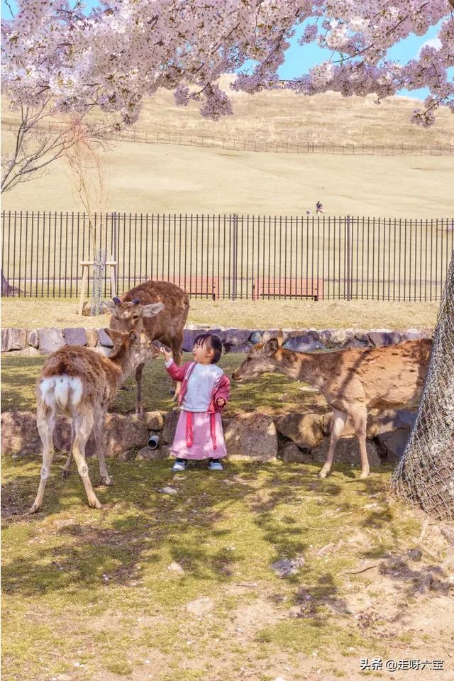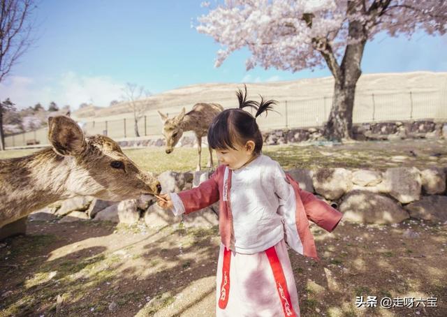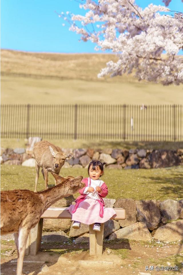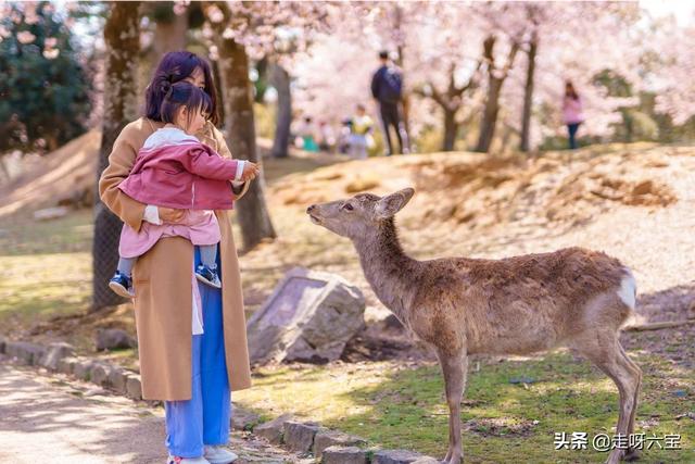 我们是带着我一岁半的女儿在奈良喂鹿。由于不能把一包鹿饼一次都给小宝宝,所以每次都是我递给我家六宝后再由六宝喂。