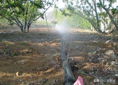 以上3点应根据树种、果树生长状况、土壤性质、地面坡度和风速等因素来确定。选择合适的喷头,调整喷头间距、喷头工作压力和射程大小。采用低压或中压喷头。低压喷水量小于10立方米/小时,射程为20米以内,中压喷水量10-40立方米/小时,射程为20-40米。不要逆风喷洒,风力达3级时不宜喷洒。