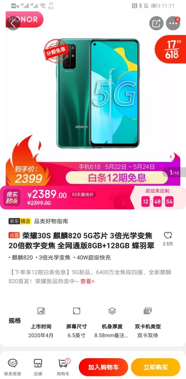 现在购买的话,不考虑价格,肯定推荐荣耀30S,最重要的一个原因是支持5G