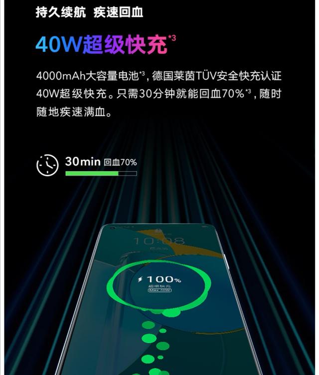 充电速度上,荣耀30s是40w快充,而20pro是22.5w快充,同样是4000mah大电池,30s可以更快回血,为你节约更多时间。