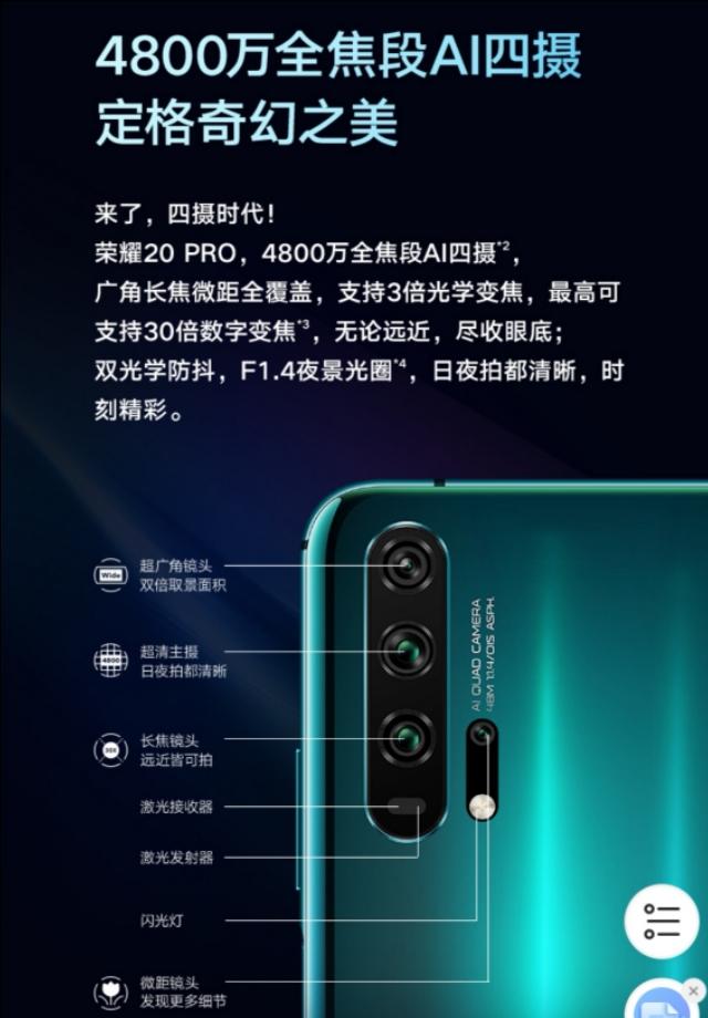 荣耀20pro,搭载了19年流行的4800万 imx586,辅以1600万超广角,800万长焦,200万微距,做到了16-80mm焦段的全覆盖