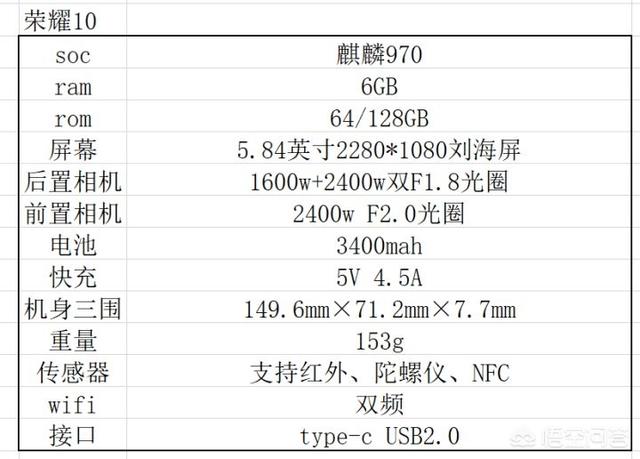 首先看一下荣耀10的配置,麒麟970+6GB+64/128GB存储+22.5W快充+AI拍照。