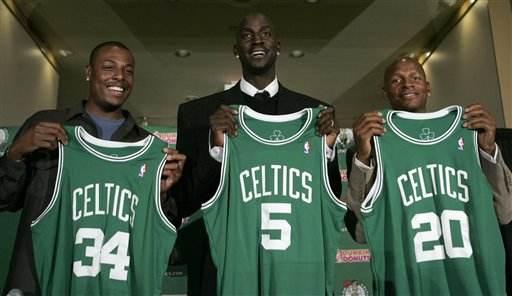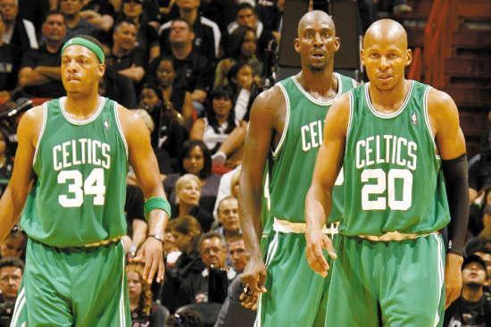 凯尔特人三巨头。07年,加内特,雷阿伦,为总冠军的梦想,来到皮尔斯的身边,组成当时最强的三巨头,组队第一个赛季,便拿到总冠军,三巨头的成功,为后人指名了方向。