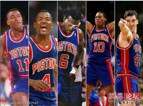 活塞五虎上将。两个华莱士的内线禁飞区,汉密尔顿的无球跑动,普林斯外线铁闸,史上最朴实的杀手比卢普斯,组成铁桶班的完美防守,成为各支进攻球队的噩梦,华丽的湖人四天王,因为总决赛碰到这只球队,溃不成军,最终解体。