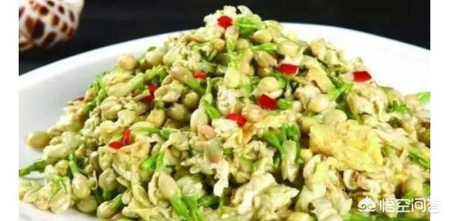 槐花炒鸡蛋,槐花在盐水中浸泡十五分钟,捞出控干水份,放入碗中,加入鸡蛋,盐,香葱末,少许鸡精,搅拌均匀,热锅倒油,倒入搅拌好的鸡蛋洋槐花,翻炒成金黄色,即可装盘