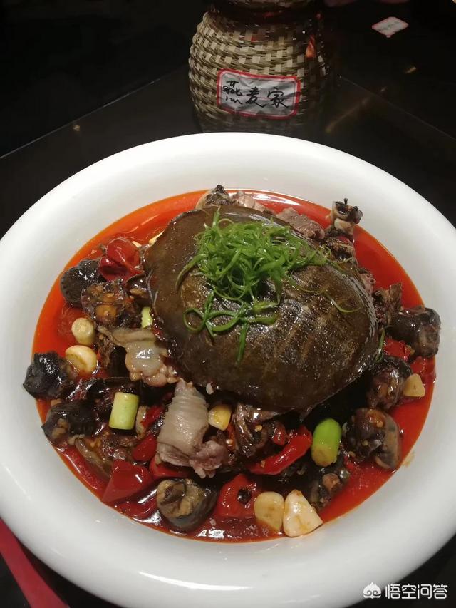 甲鱼、别名水鱼、憋、王八。甲鱼的烹调方法多样、干锅甲鱼是湖南有名的干锅菜之一。湘菜今天我就简单的介绍一下烹调干锅甲鱼的做法:。 原料:新鲜甲鱼一只500克、青红线辣椒各30克、洋葱1个。大葱2根、大蒜两瓣、生姜一块、香菜15克、干辣椒3个、香辣酱5克、花雕酒20克、自己秘制私房干锅酱10克,鸡精1小勺、东古酱油适量。 步骤: 一:将新鲜甲鱼用手抓住脖子用刀从脖子底下划1厘米的小口放血后、从甲鱼外壳底下部位开刀取出内脏、用清水冲洗干净瘀血。 二、锅内放入适量清水烧开把甲鱼用开水烫一下捞出:用小刀刮去上面和肚子底下的黑膜、用刀把甲鱼外壳取下、把甲鱼肚子肉和腿肉剁成3厘米的小块备用。 三、葱姜洗净切片、蒜用刀拍开裂口、在留一点葱和姜、葱切长段、姜切块拍松。洋葱切丝、青红辣椒切丁。干辣椒剪小段、香菜洗净切小段、 四、用煲将甲鱼块和外壳适量的清水下入大葱段姜块花雕酒盐少许一丝丝低盐煲八成熟捞出,将煮熟的甲鱼撒入适量的玉米淀粉拌均匀、起锅烧油等油温7成热后下入甲鱼稍炸、淀粉凝固成型后倒出油漏内。 五、另起锅放入适量的葱油、油烧热后倒入干辣椒段、和葱姜蒜片爆香后、加入香辣酱、秘制私房干锅酱、青红辣椒丁稍煸炒、加适量的花雕酒、鸡精、十三香少许、东古酱油适量少许。中火翻炒均匀即可。 六、取干锅放入火上烧6成热后、到入一丝丝食用油把切好的洋葱丝到入干锅内用筷子稍搅倒入烹调好的甲鱼块。把甲鱼外壳形状整合好、撒入香菜段即可上桌食用。颜色鲜艳、味道香辣鲜美。