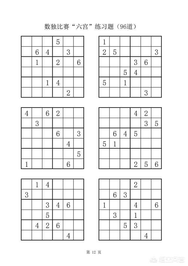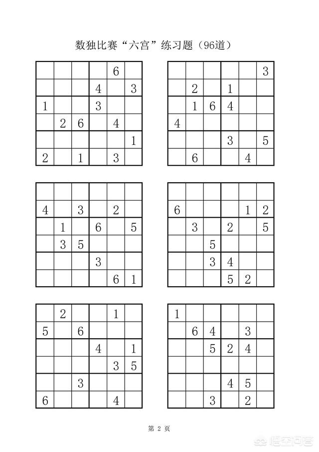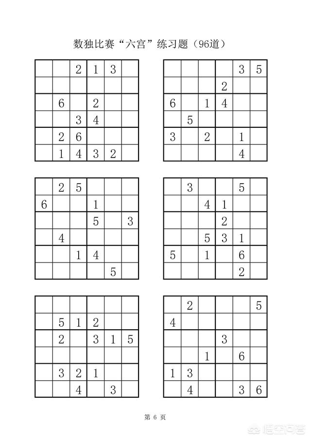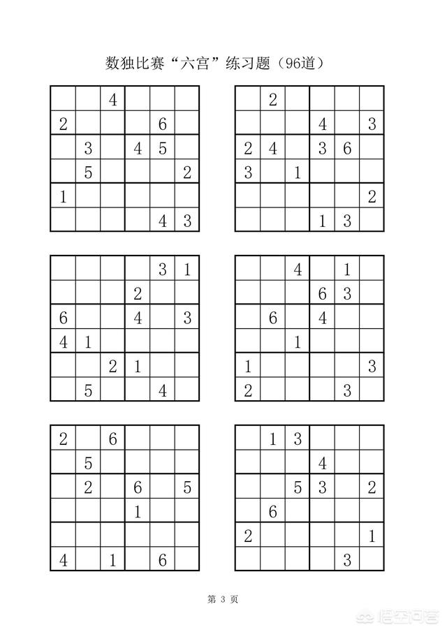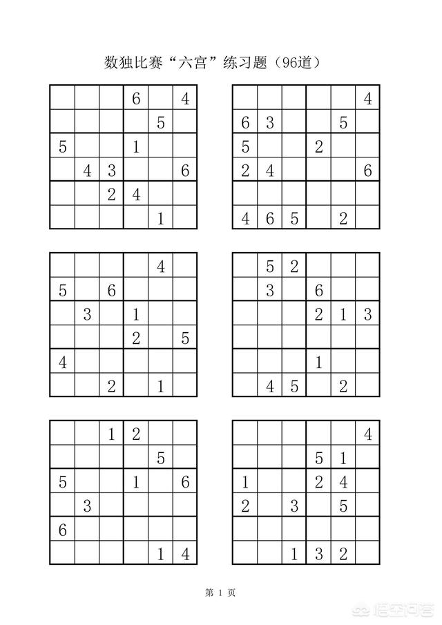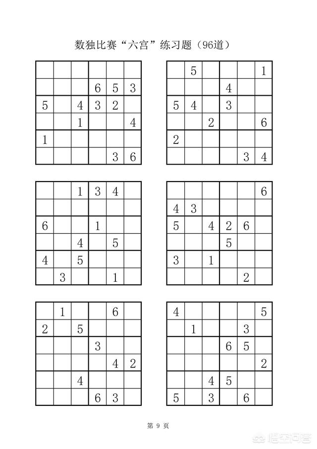 附:数独比赛六宫练习题