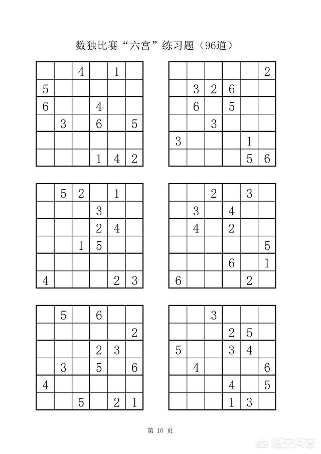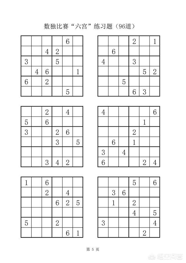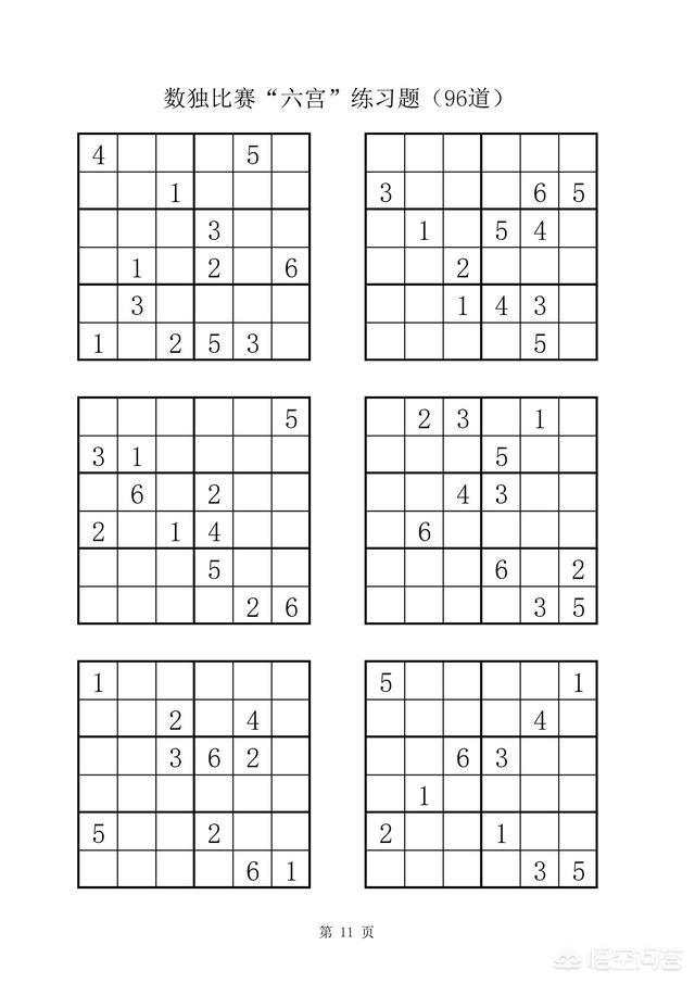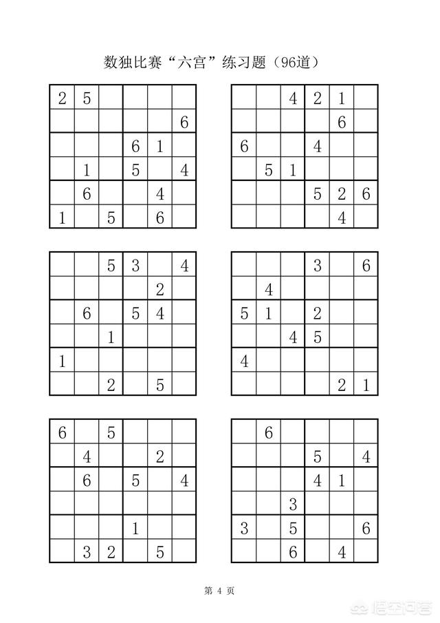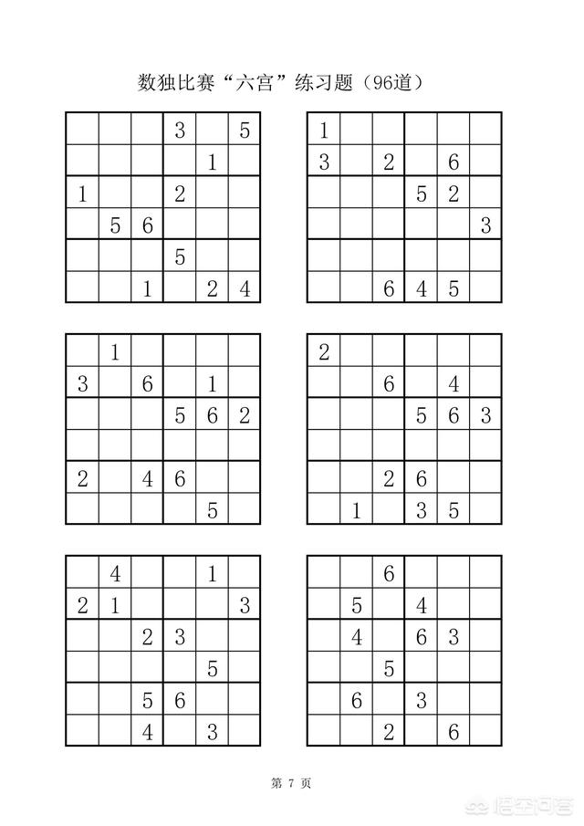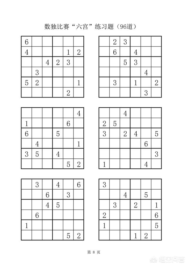 附:数独比赛六宫练习题