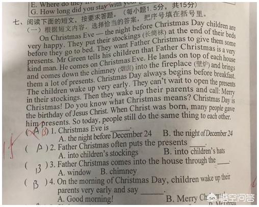 二、回答问题。有的考试的最后一道题,根据短文内容回答问题或者学生自己问问题,自己回答。说实话,这样的题很难。课本根本没有这样的练习题,肯定会懵了。即使有的同学写了不少,往往语法上也有错误。