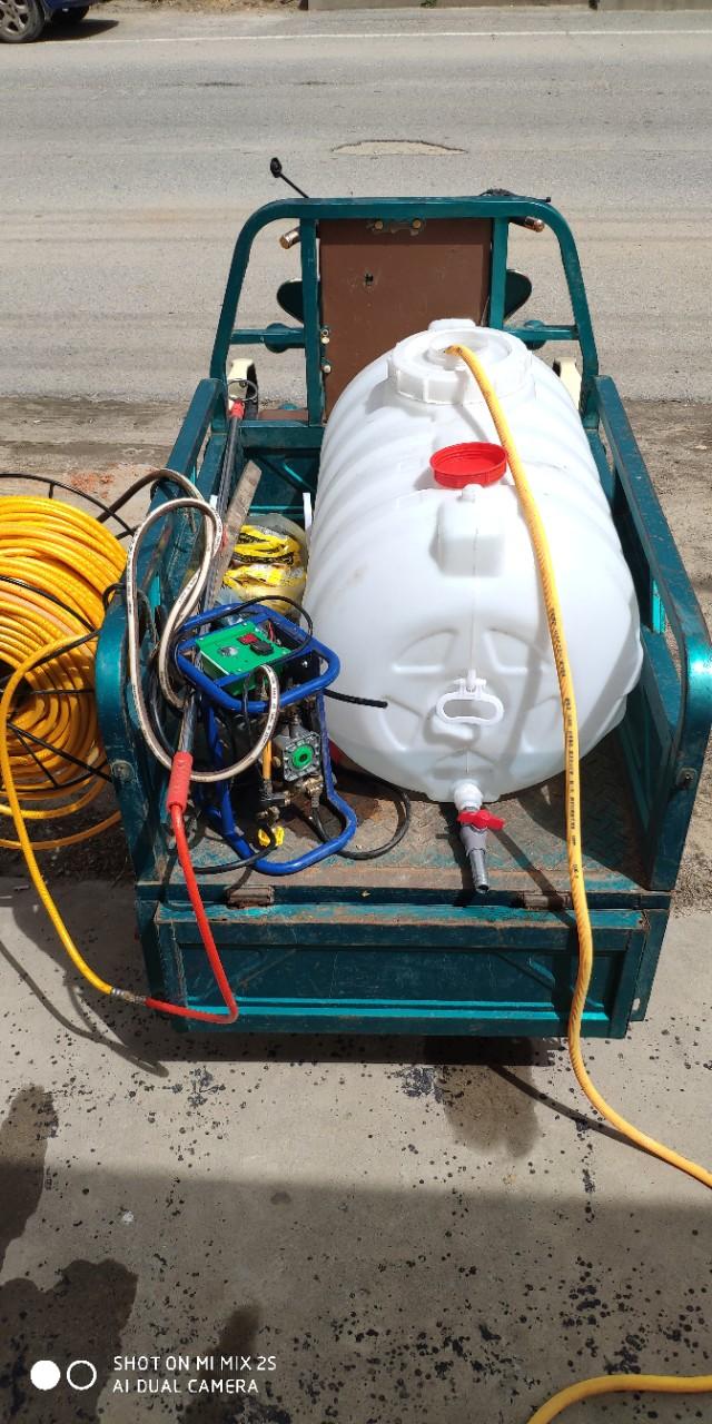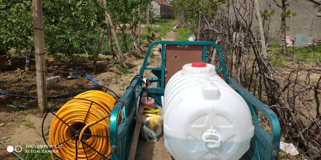 我家现在有2亩枣园,1.5亩果园,以前打药用电动喷雾器背着打又累又麻烦,就是省水,现在升级了,用的是电动三轮车做为电源的打药机,400斤水桶直接放在电动三轮车斗里,买了150米管子用手动缠管器缠上挂在车斗边上,拉线管方便,现在用上后省力省工,2亩地一个多点就打完了,大大提高了效率!
