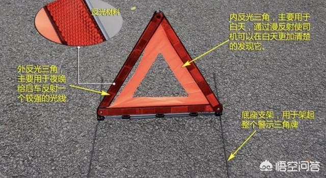 外面的反光三角是为了夜间汽车灯光照射之后能反射一个较强的光线给后面车辆的司机。