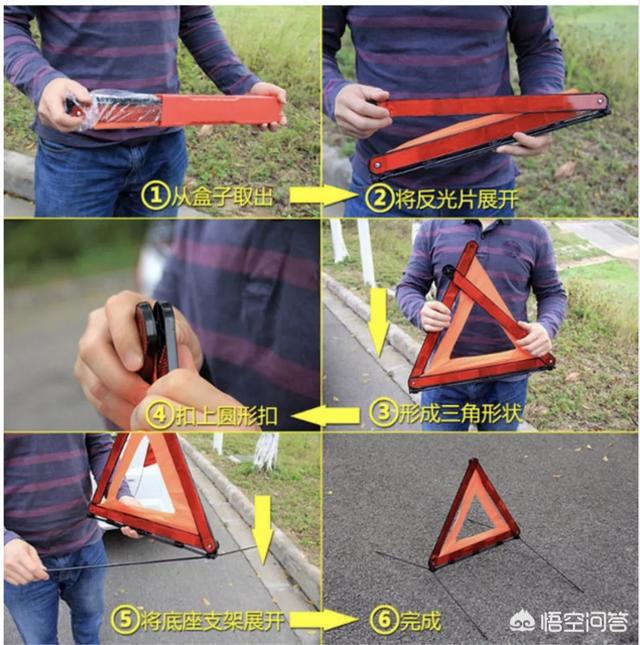 第一,要知道三角警示牌通常放在车内什么地方。一般情况下,新购置的车辆,三角警示牌是装在塑料盒内,和备胎一起放在后备箱垫板下面。平时,我们可以将它取出来,放在后备箱内,便于随时取用。第二,要知道三角警示牌怎么摆放。当车辆发生故障需要停车时,就要在车后来车方向摆放三角警示牌。具体来讲,普通道路上停车,要将三角警示牌放置在至少50米以外的地方,与故障车辆在同一车道上。在高速公路上发生故障需要停车,就要在车后至少150米远处放置三角警示牌。如果能见度不足或者是夜间,距离还要延长至200米以上。