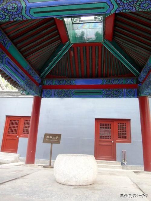 盝顶的特点是四周是是四条脊顶,围合中央的平顶,在金元时期常见,明清比较少一些,明故宫中也有。用在凉亭的话,盝顶的中间是空心的,古代很多凉亭顶是中空的。
