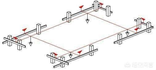 然后,确定四轮廓控制边线的水平。选择一个控制桩根据现场贵方要求确定一个高程,用水准仪在四个控制桩上按照确定的高程作上标记,将控制线固定在标记处。