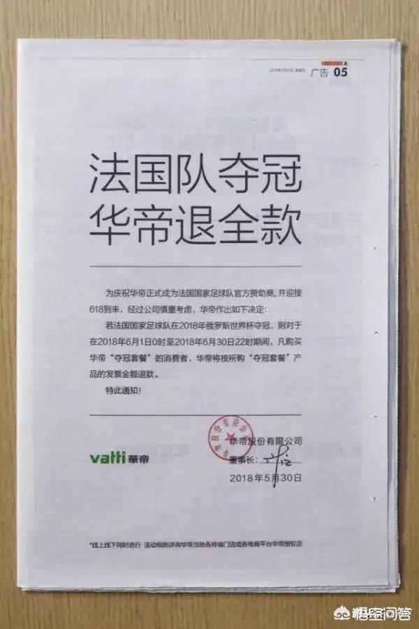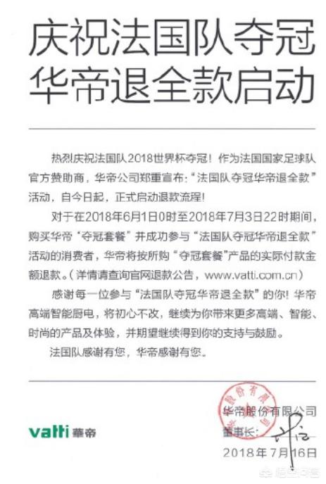 法国队还真的拿了冠军,华帝还真的还要退“全款”了