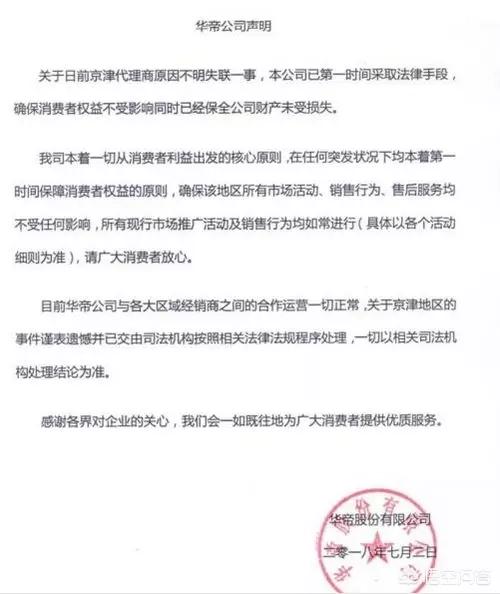 一帮吃瓜群众都认为华帝快凉了…那当然是不能够的,华帝发布公告表示,“经销商”跑路只是独立的个体事件。