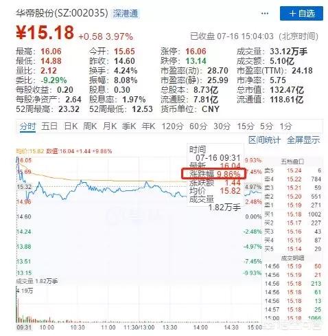 7月16日,世界杯结果出炉后开盘首日,华帝股份多次试图触摸涨停板,截至侦探君发稿,股价有所回落,为15.18元/股,涨幅为3.97%。