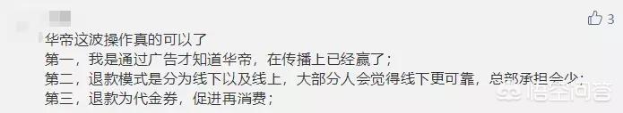 再有就是法国队很争气,华帝赌对了,有人说损失了几千万,这哪里是损失,是赚了几个亿的传播效应,看看前面的那些品牌,花了钱,跟销售无关,人家线上退2900万,线下退5000万,加起来7900万,线上华帝公司承担,线下经销商承担。