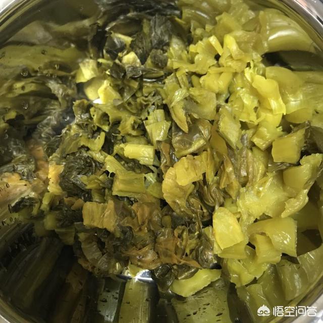 原料备齐,少许油将葱姜蒜炒香,再将酸菜倒入继续小火翻炒,炒熟再放盐!