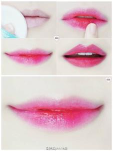 三、弱化轮廓打造饱满双唇 只要在唇部增加处分量感,就能缩小脸部的面积。使用遮瑕膏弱化唇部的轮廓,使用含有珍珠光泽的唇彩涂抹在唇部中央,强调饱满度。使用遮瑕膏淡化唇部和肌肤的分界线,强调唇部的厚重感。使用白粉色唇彩涂抹在唇部中央,并向外晕开。