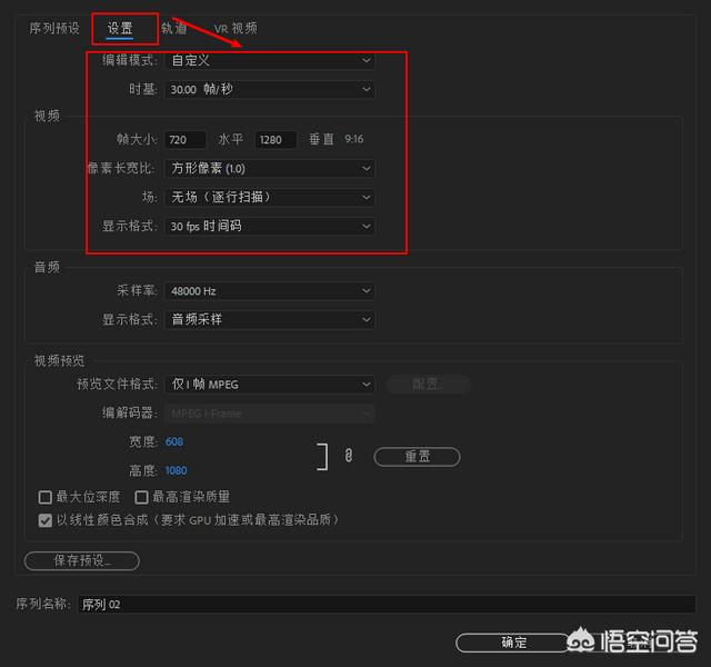 3.点击【设置】,编辑模式选择【自定义】,时基根据你原本的视频帧速率来设置,比如是25帧/秒的就设置25。帧大小就根据竖版视频的要求,主要保持是9:16的比例就可以了,比如1080x1920、720x1280等,其他的默认。