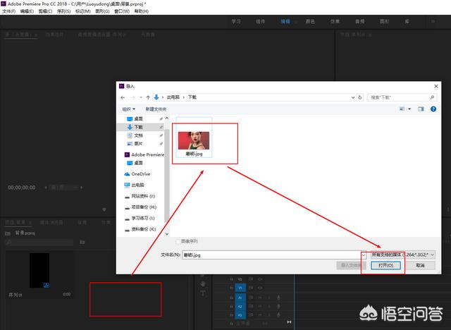 4.双击项目面板空白处,导入需要处理的视频,我这里用图片代替,视频一样的方法。