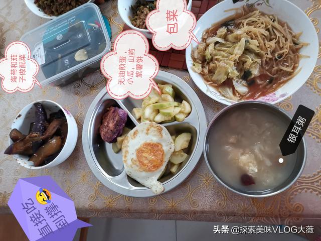 早餐是非常重要的,全天当中早晨是唤醒一天精神的开始,对于上班族来说,早餐吃的好,保证一天的精神饱满!早餐最好能包括的全面一些,蛋白质,脂肪,膳食纤维,碳水化合物,通通都要包括进去。半个小时的时间就能做出来,电锅里熬上银耳粥,电饼铛上煎上荷包蛋,在简单炒一个菜,蒸个茄子,凉拌一下,头一天晚上腌好的海带,还有紫薯山药饼就可以开吃啦!