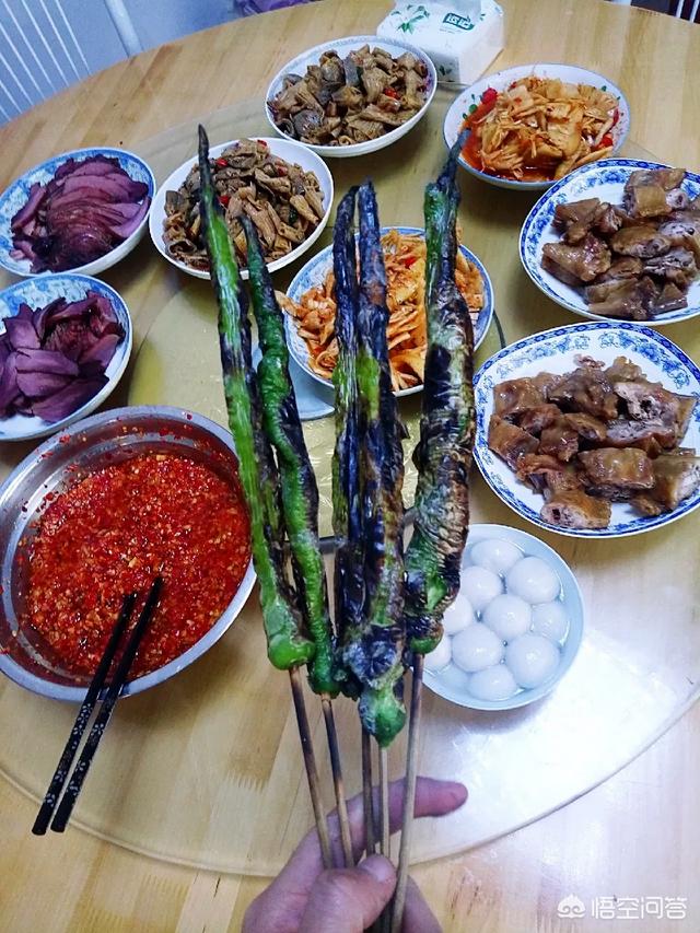 说起年夜饭肯定也是年复一年的菜品啦,大部分都是我们之前吃过的菜品若是要谈谈创意、创新还真的难找,但这么长的春节还是有收获新鲜。那是初五迎财神那天早晨,刚起床就开始忙活起来。我看见妈妈把青椒一整颗的串在木签上,我没有多问我以为是今天中午吃麻辣烫呢。但又麻辣烫也不烫青椒啊,然后就问母亲怎么这样做。我爸就在旁边插嘴到待会要放到炭火里面去烧。我一听特别惊讶,这是什么新式花样?我等着母亲把青椒递过来,我抓着几串青椒放进土灶的炭火里。奶奶在一旁解说以前的人们没有粮食、没有油,就把辣椒放在火里烧,等一会儿再掏出来拍拍上面的灰,撕烂放上几粒盐特别好吃。奶奶话音一落就听到炭火上劈里啪啦的声音,还飘出一股青椒独有的香味,我赶紧取出木签就看到青椒穿上了一身“虎皮”。接着我又翻一面继续烤,就这样烤的青椒又香又焦。奶奶取下来拍拍灰,撕来放在盘子里和鸡肉一起凉拌。最后大家伙儿坐在一起吃饭,都说这道菜好吃,有的长辈们还能说说自己与这道菜的故事。我觉着这可能不是创新,应该是革故鼎新、忆苦思甜。